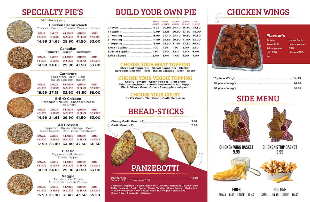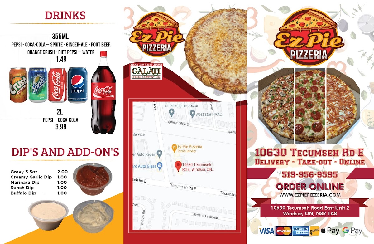 With an array of refreshing drinks like Pepsi and Sprite, Ez-Pie Pizzeria promises an enjoyable dining experience for all. Whether for a cozy dinner or a gathering, it’s a delightful addition to Windsor’s culinary scene.